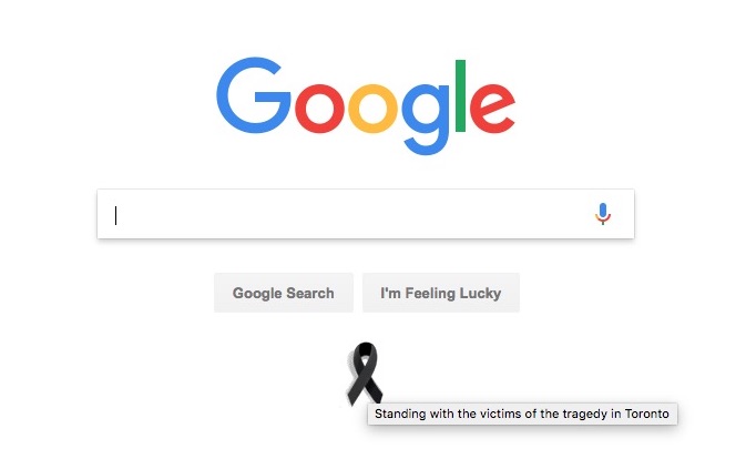 Googleでも、追悼の意を込めたブラックリボンが表示されています。