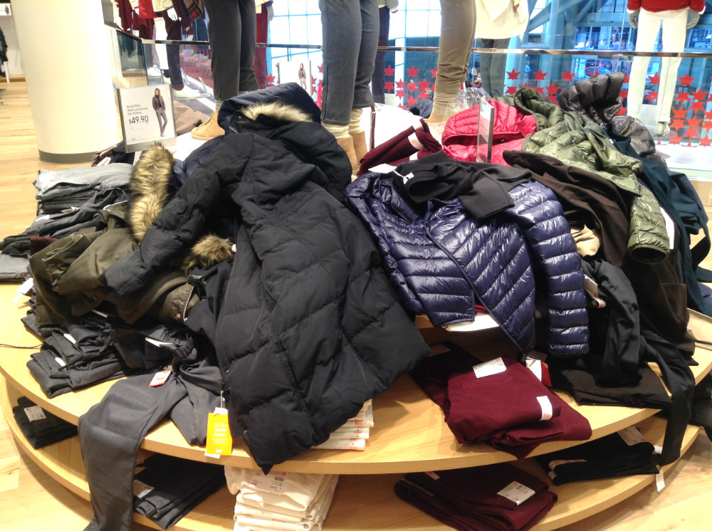 トロント仕様になってるディスプレイ。日本のユニクロでは扱ってない他社製品も。
