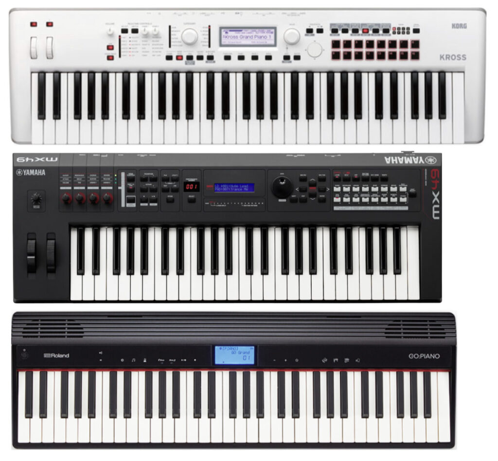 ちなみに、KROSS2の61鍵とMX49、それにGO:PIANOの61鍵の大きさを比べてみるとこんな感じです。