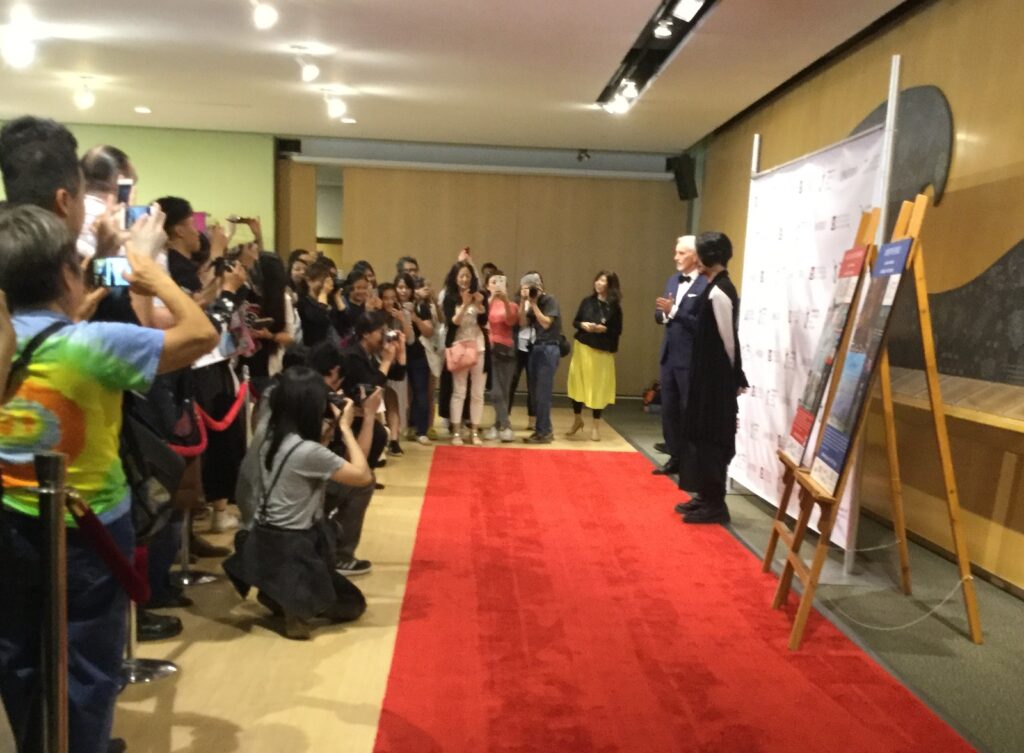 通訳を立てて行われてた質疑応答では、代表の人にいきなり役者人生としてのコアな質問を最初にされて、戸惑ってました。さすがにそりゃ戸惑うわ!(笑)