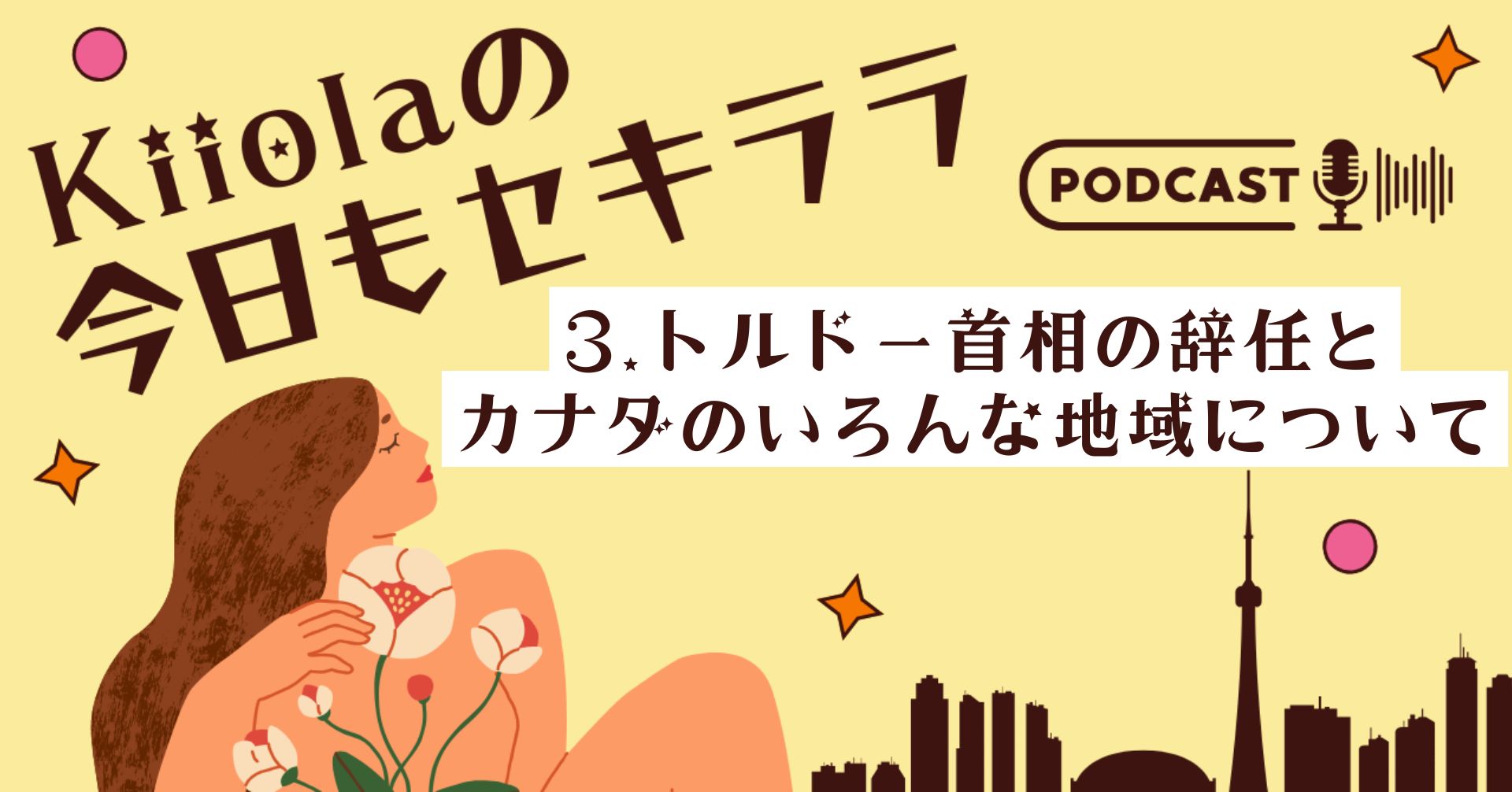 第3回目は、ジャスティン・トルドー首相の辞任発表にまつわることと、カナダのいろいろな地域の違いについてです。