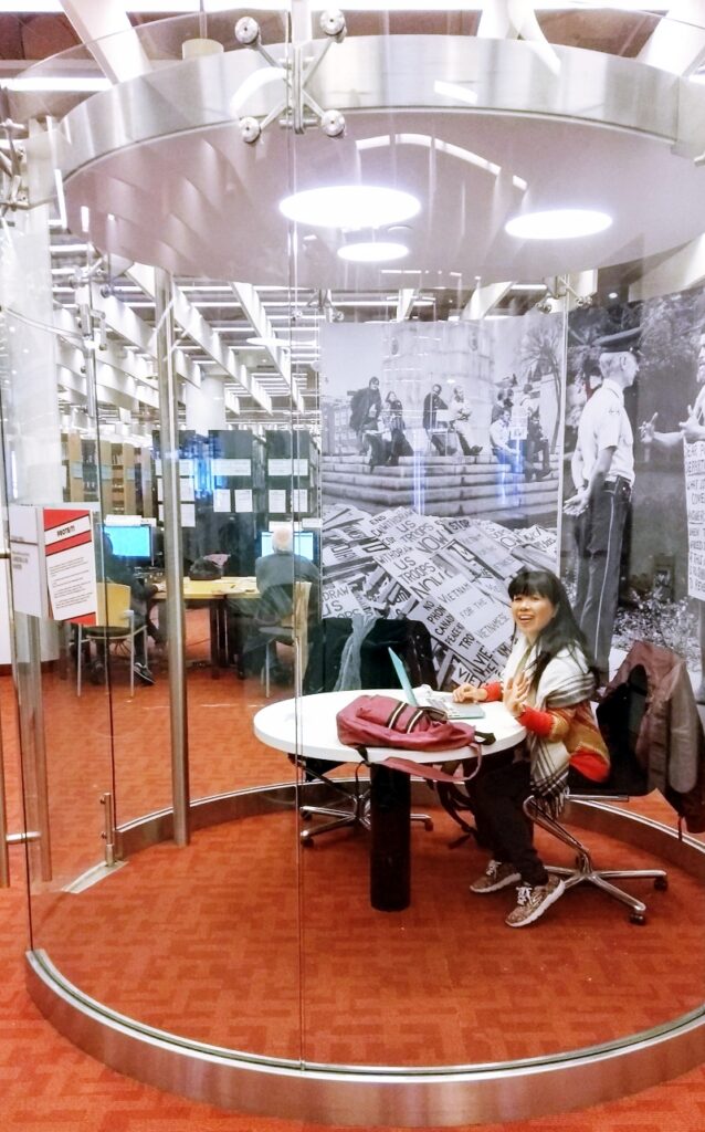 予約するとこんなガラス張りの個室(Pod)内で落ち着いて勉強/ミーティングなどが出来たりしちゃいます。