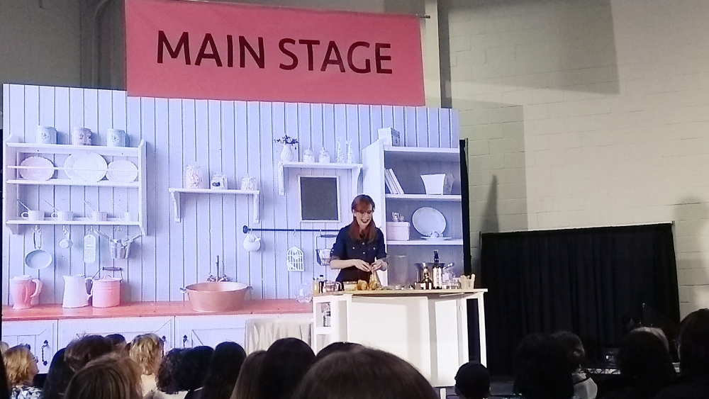 メインステージでは、カナダで有名な人気シェフ、メリー・バーグさんがなにやらスイーツを作る実演。